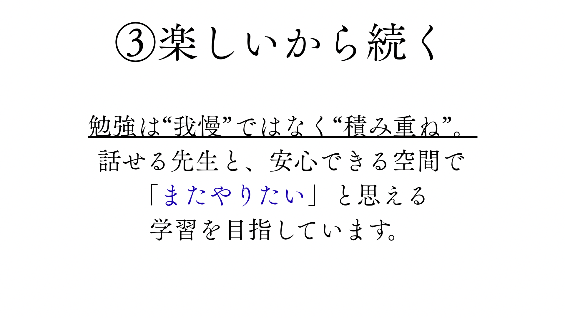 「自信を育てる場所」となることを目指しています。